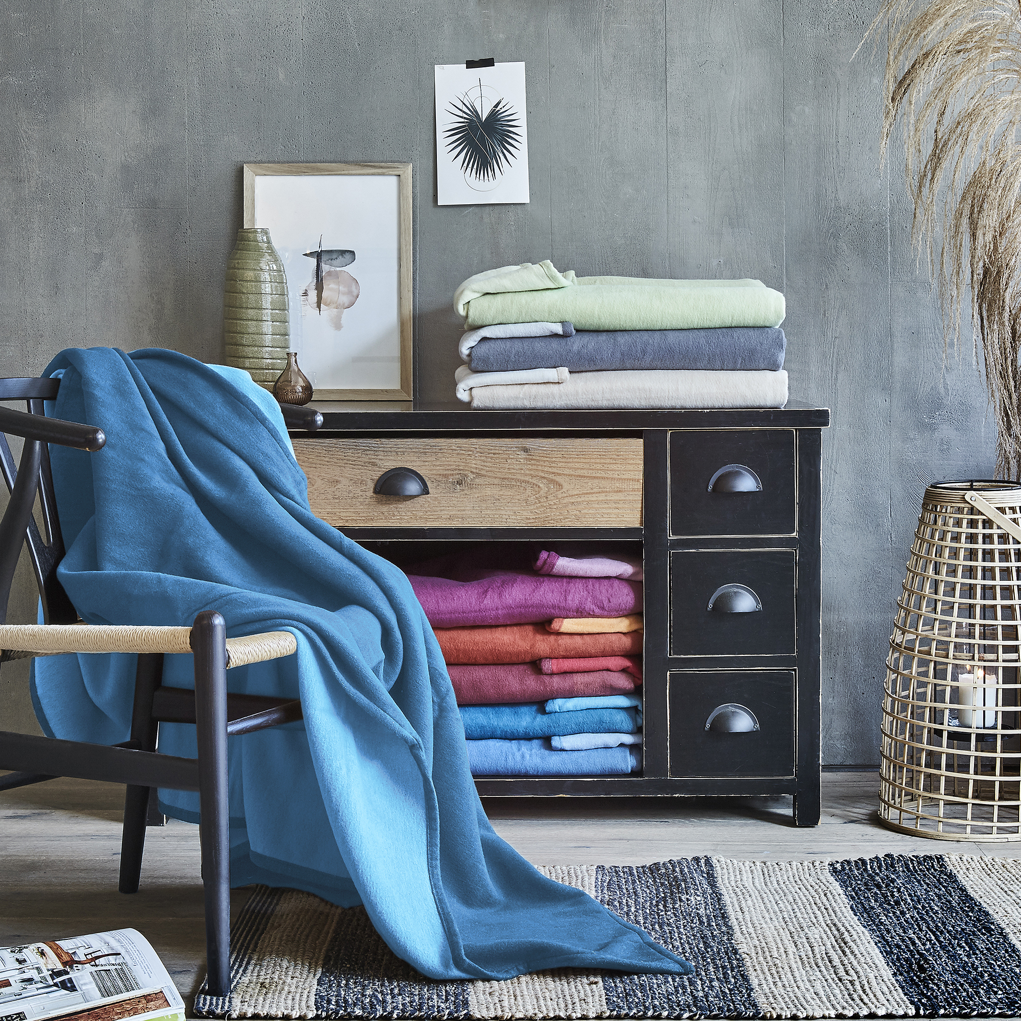Durch die Naturfaser ist die Wohndecke weich & atmungsaktiv, zudem angenehm leicht.