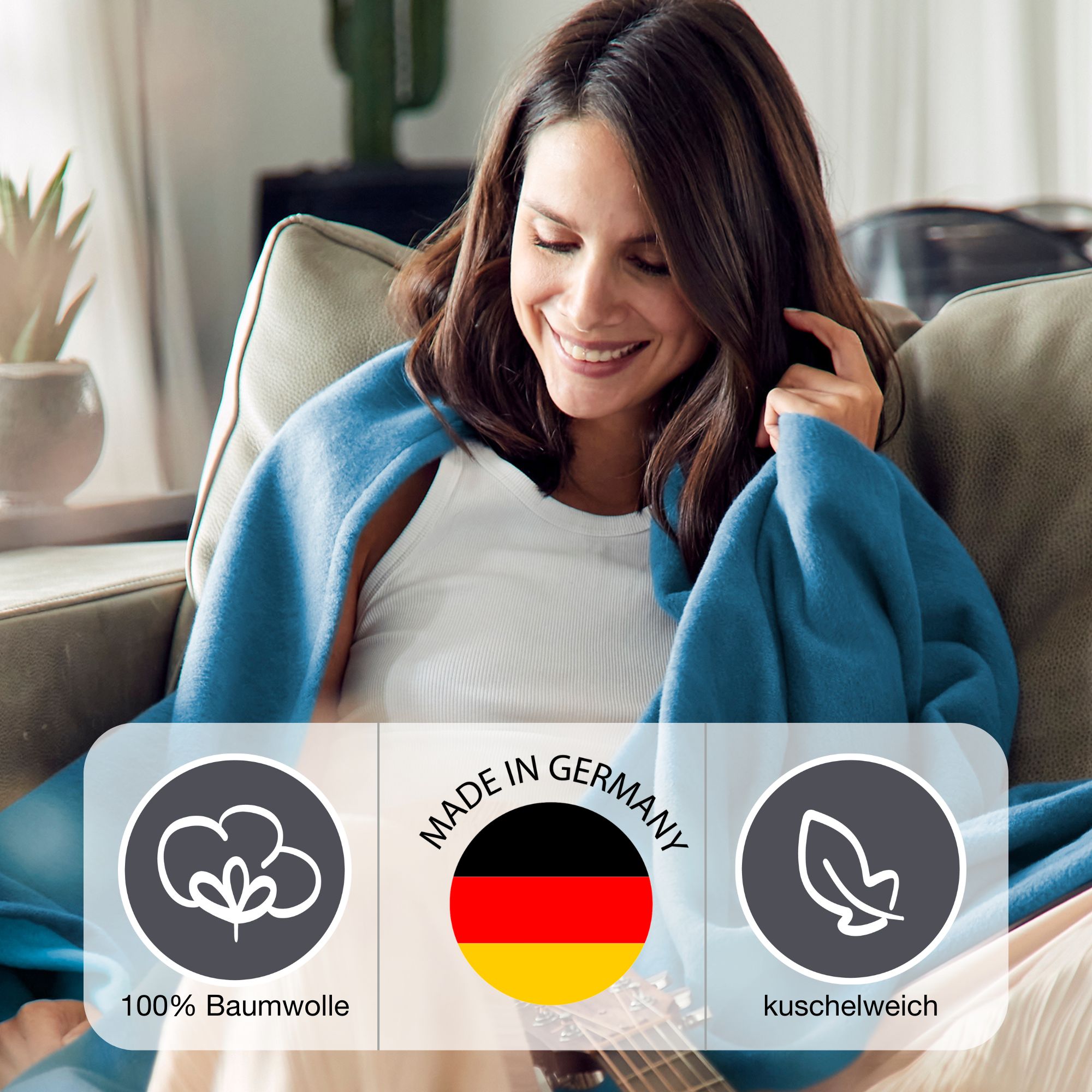 Die Kuscheldecke wird aus zertifizierter Bio Baumwolle im Münsterland hergestellt.