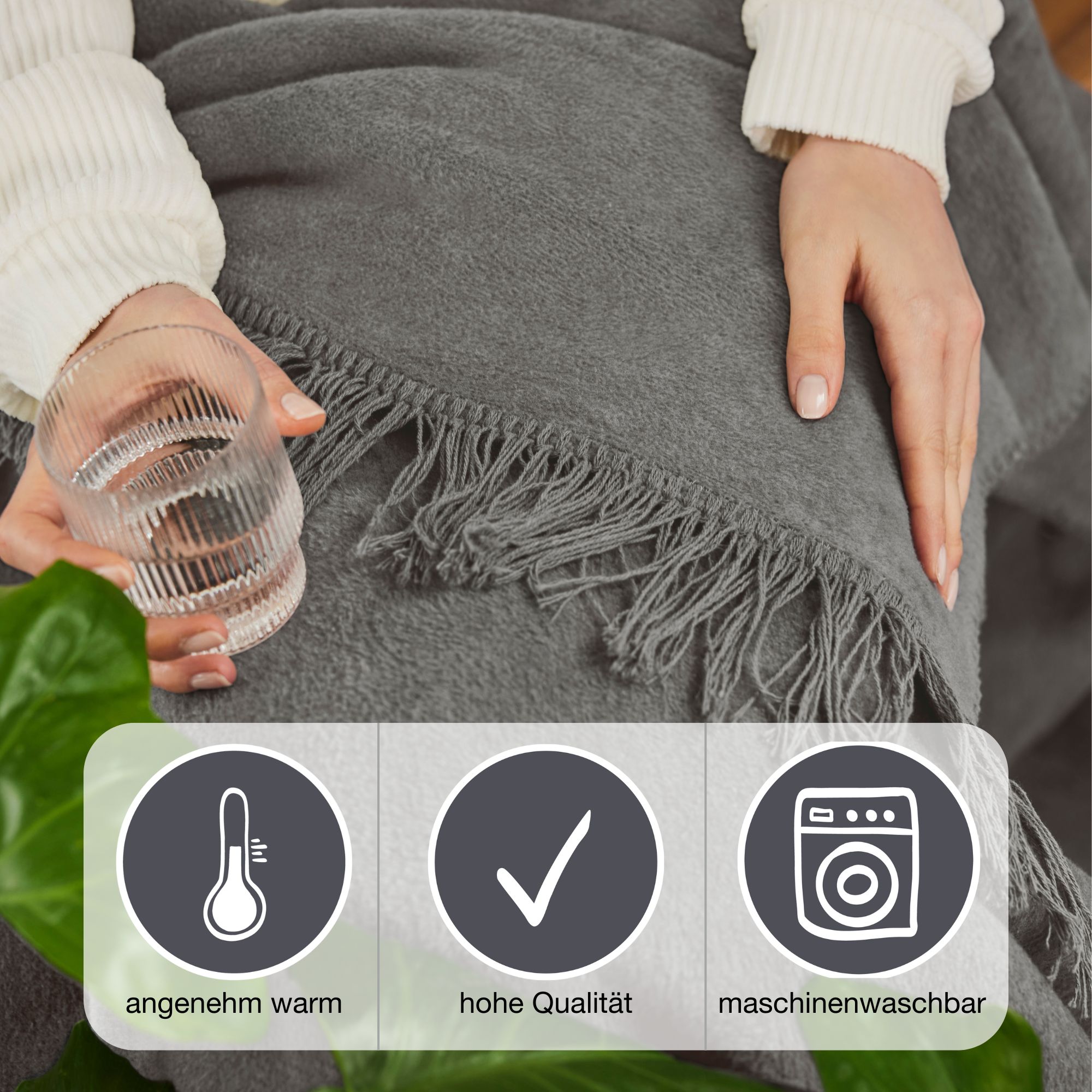 Die Wohndecke ist schön weich auf der Haut und wärmend. Sie eignet sich perfekt für das ganze Jahr, egal ob Sommer oder Winter, die Decke lädt jederzeit zum Kuscheln ein.