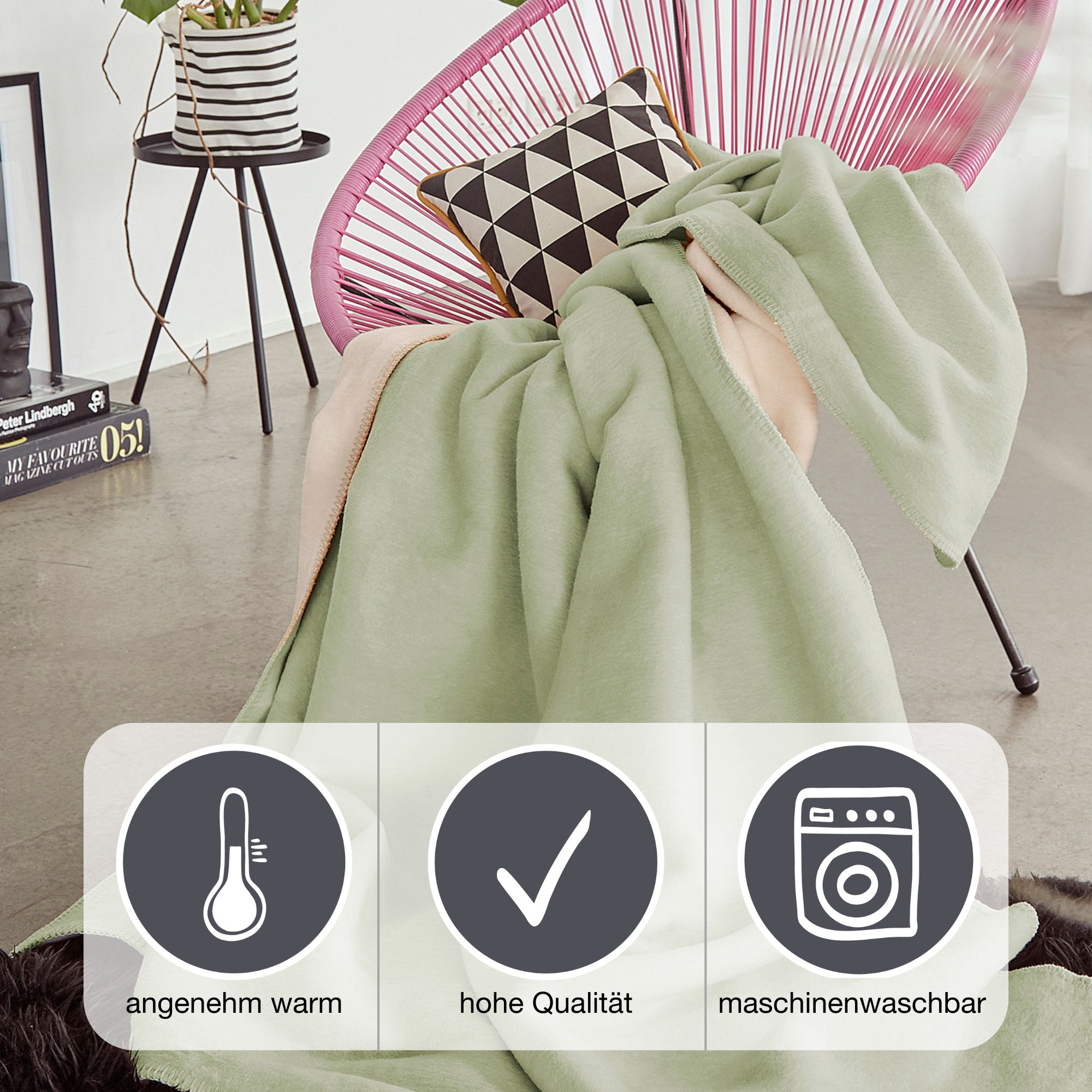 Die Wohndecke ist schön weich auf der Haut und wärmend. Sie eignet sich perfekt für das ganze Jahr, egal ob Sommer oder Winter, die Decke lädt jederzeit zum Kuscheln ein.