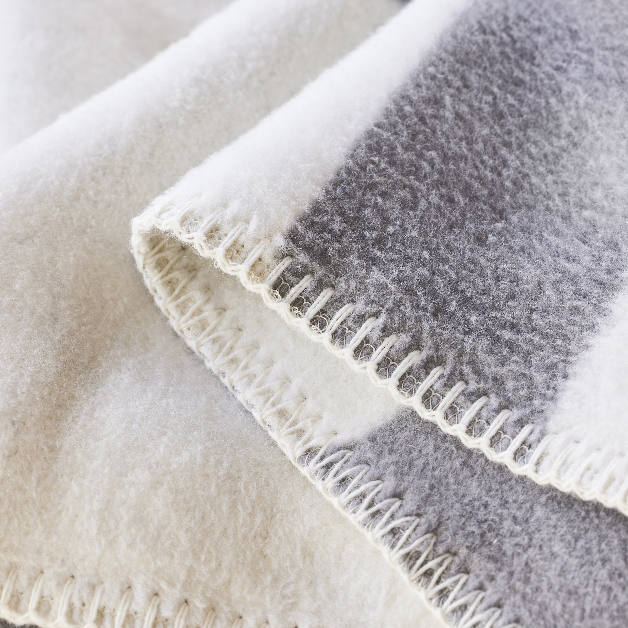 Die Kuscheldecke besteht aus 58% Baumwolle, 35% Polyacryl, 7% Polyester.