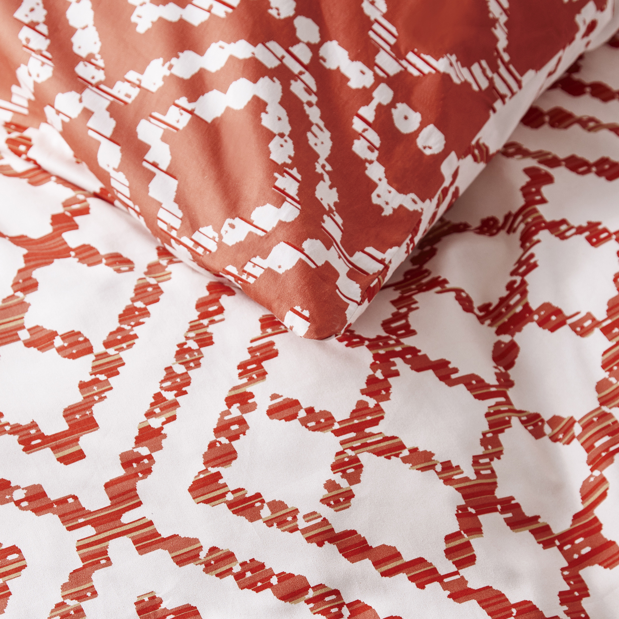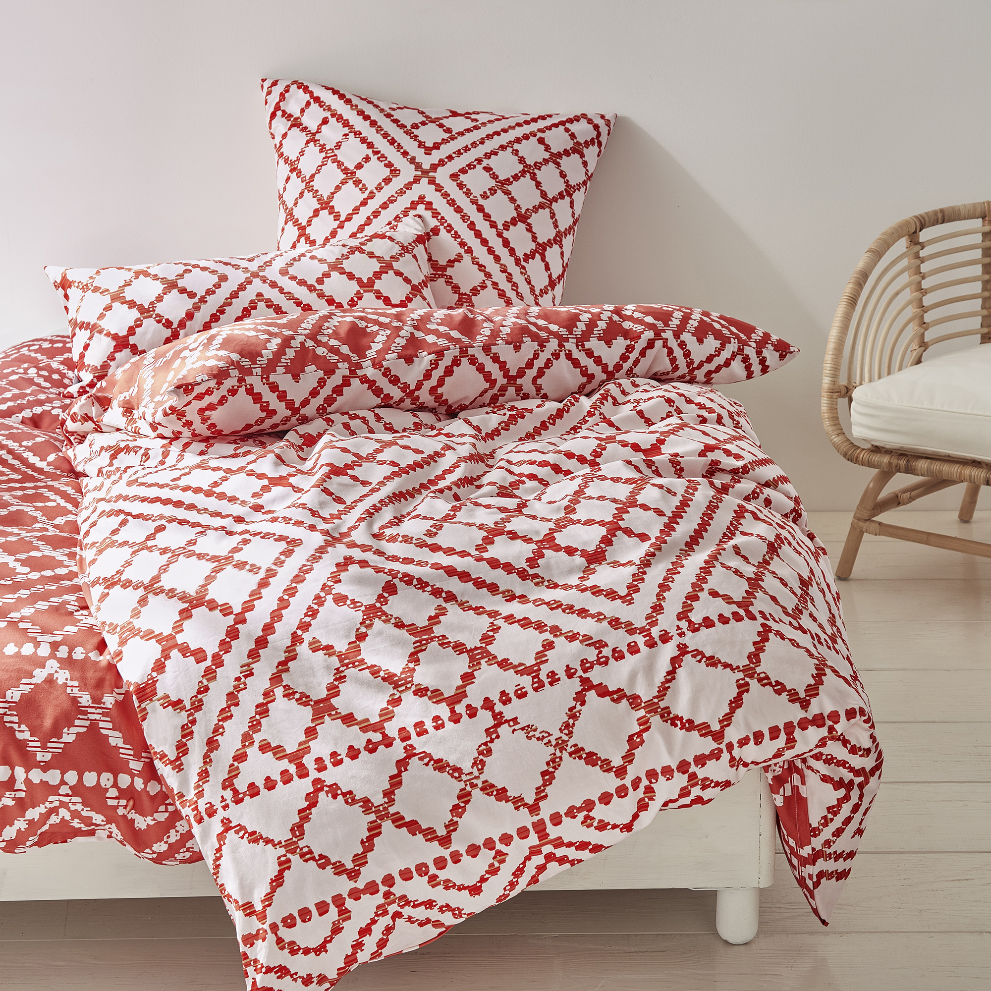 Unsere IBENA Satinbettwäsche Hana ist ein wahrer Blickfang in Ihrem Schlafzimmer. Das Hana-Muster in Rotorange-Weiß verleiht Ihrem Bett eine moderne und gleichzeitig gemütliche Atmosphäre. Die Bettwäsche besteht zu 100% aus hochwertiger Baumwolle und ist mit einem glänzenden Satin-Finish versehen, das ein angenehm weiches Gefühl auf der Haut hinterlässt. Die kräftigen Farben und das feine Muster sorgen für einen frischen und lebendigen Look in Ihrem Schlafzimmer.