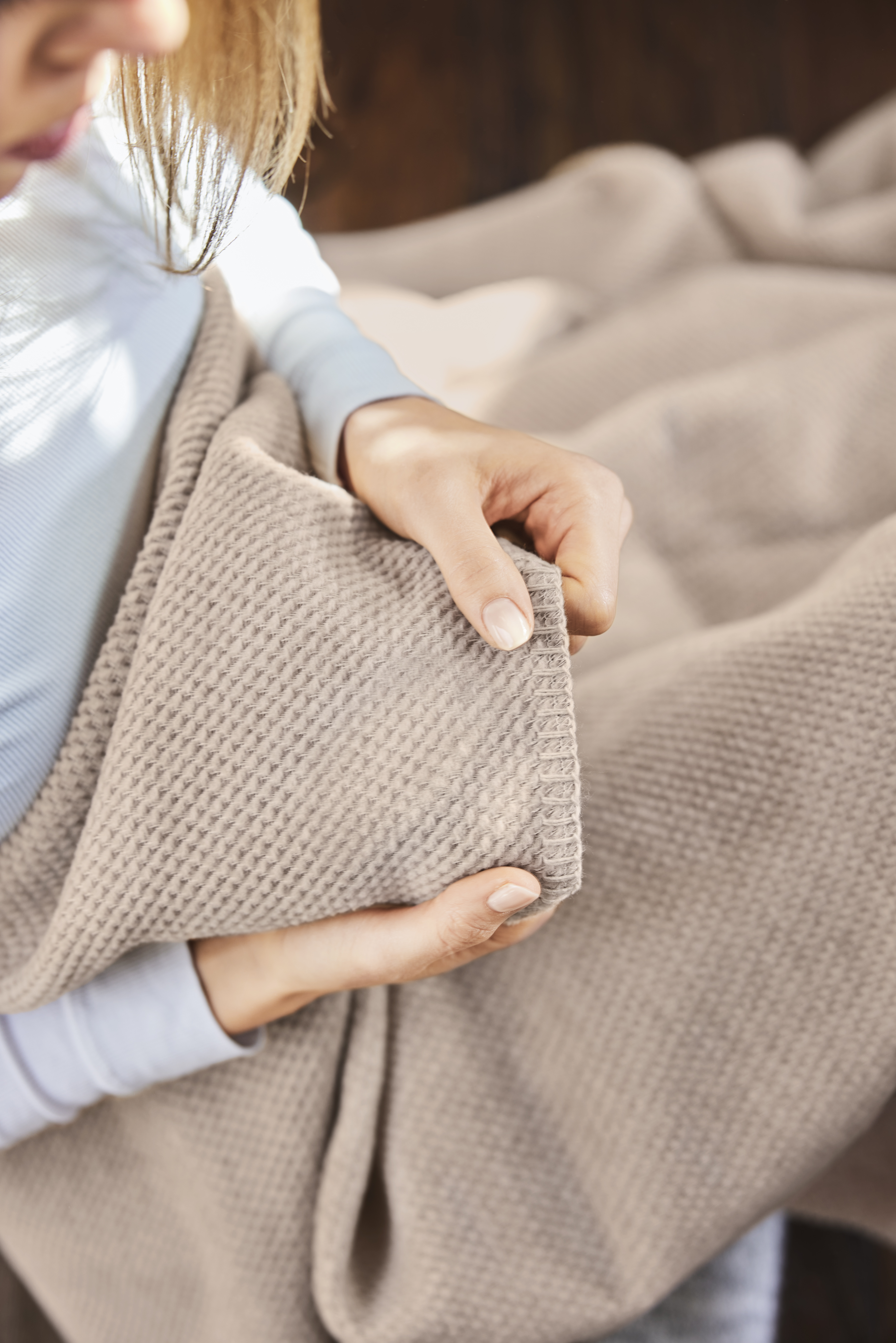 Durch die Naturfaser ist die Wohndecke weich & atmungsaktiv, zudem angenehm leicht.