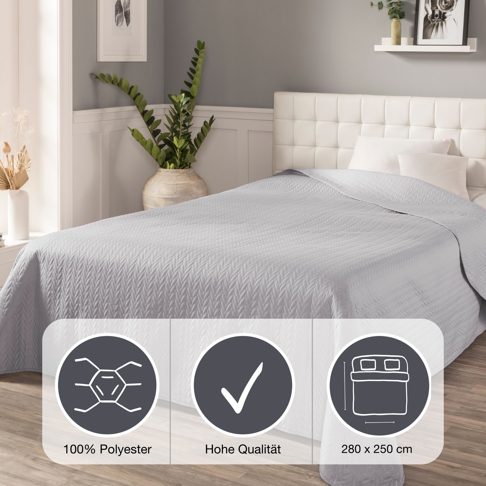 Die Tagesdecke Nancy ist der ideale Bettüberwurf für Dein Zuhause. Sie ist nicht nur praktisch, sondern auch gemütlich und hochwertig. Diese hochwertige Tagesdecke ist perfekt geeignet, um Dein Bett tagsüber zu schmücken und vor Staub und Schmutz zu schützen. Sie ist aus hochwertigen Materialien gefertigt und sorgt für ein angenehmes Gefühl auf der Haut. Die Tagesdecke Nancy ist in verschiedenen Farben erhältlich und passt somit perfekt zu jeder Einrichtung.