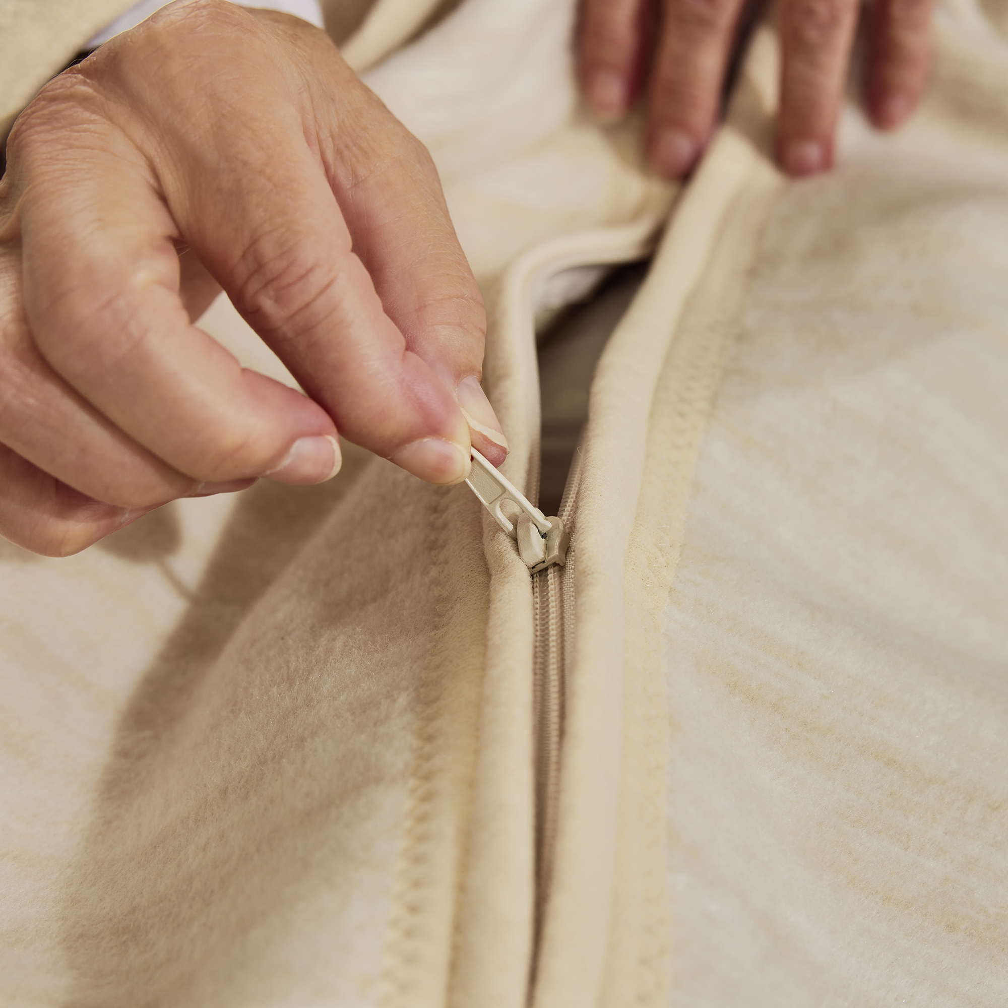 Der Wohnmantel Fano ist mit einem praktischen Reißverschluss ausgestattet, der es Ihnen ermöglicht, ihn beidseitig zu öffnen. Dadurch haben Sie die Möglichkeit, den Mantel je nach Bedarf zu öffnen und zu schließen. Dank des Reißverschlusses können Sie den Wohnmantel Fano auch schnell und unkompliziert an- und ausziehen, ohne dabei auf den Komfort und die Wärme verzichten zu müssen.
