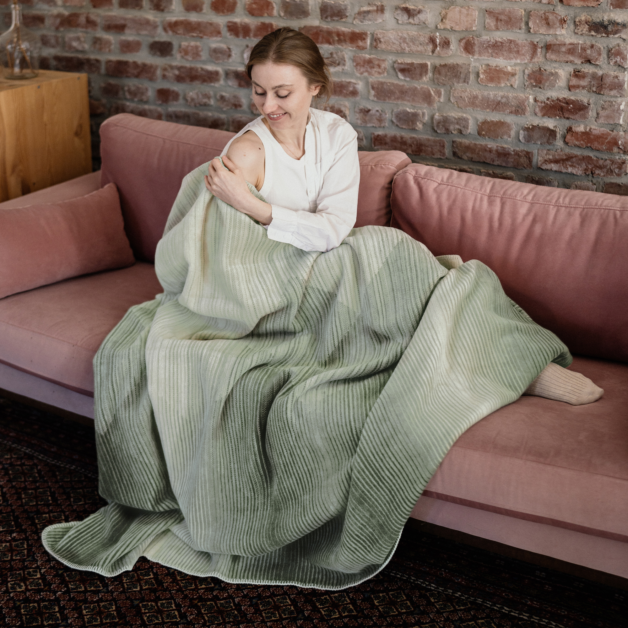 Die Wohndecke ist schön weich auf der Haut und wärmend. Sie eignet sich perfekt für das ganze Jahr, egal ob Sommer oder Winter, die Decke lädt jederzeit zum Kuscheln ein.