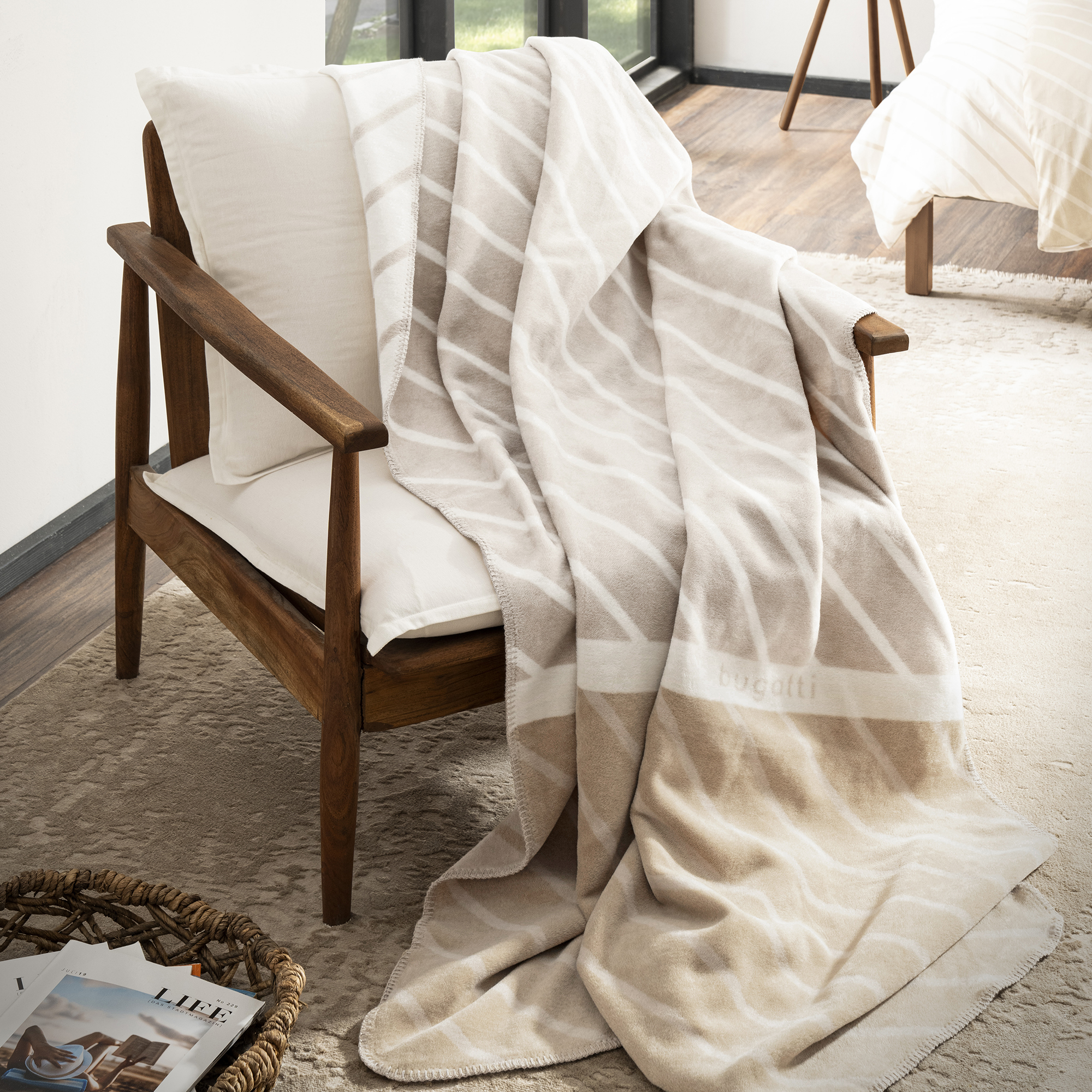 Die bugatti Decke ist ein dezentes und stilvolles Accessoire für Ihr Zuhause. Mit ihrem subtilen Streifenmuster in den Farben Beige und Weiß fügt sie sich harmonisch in jede Einrichtung ein. Hergestellt aus einer hochwertigen Baumwollmischung, ist sie nicht nur besonders kuschelig, sondern auch langlebig und strapazierfähig. Die Decke ist mit dem Öko-Tex Standard 100 zertifiziert, was bedeutet, dass sie frei von schädlichen Chemikalien und somit unbedenklich für Ihre Gesundheit ist. Sie können sich also bedenkenlos in die weichen und warmen Fasern dieser Decke einkuscheln. Ein weiterer Pluspunkt ist die Waschbarkeit der Decke.