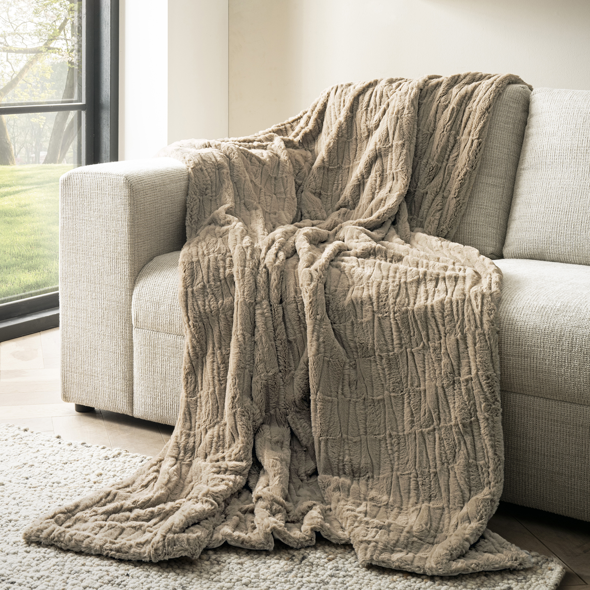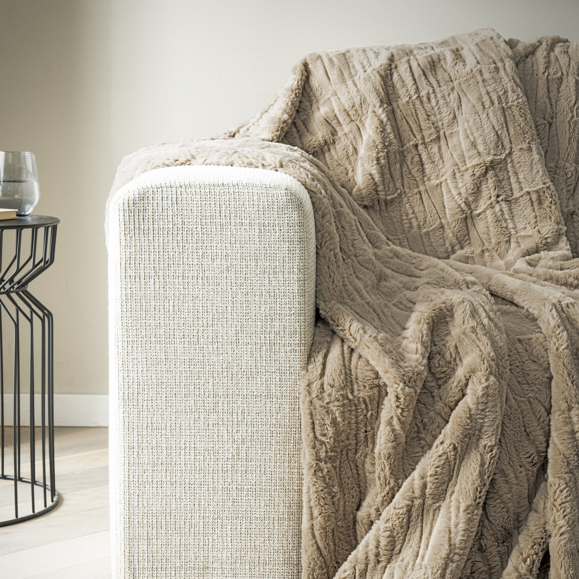 Diese Felldecke aus Kunstfaser ist strapazierfähig und waschbar bei 40 Grad.