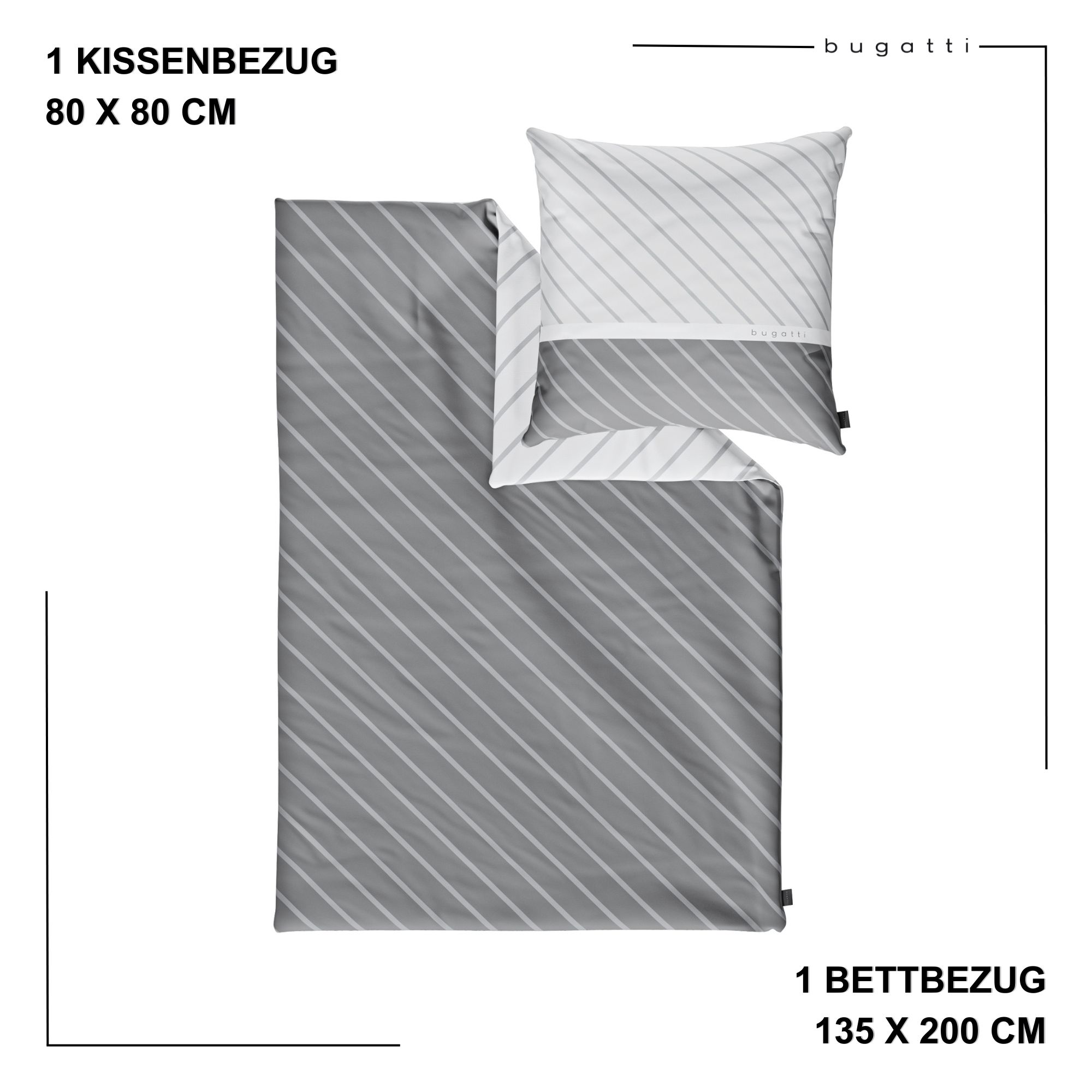 Die Bugatti Satinbettwäsche ist ein hochwertiges Produkt, das mit seinem gestreiften Muster und dem eleganten Bugatti Logo ein echter Blickfang in Ihrem Schlafzimmer ist. Das schlichte Design verleiht Ihrem Bett eine zeitlose Eleganz und sorgt für eine angenehme Atmosphäre zum Entspannen und Träumen.