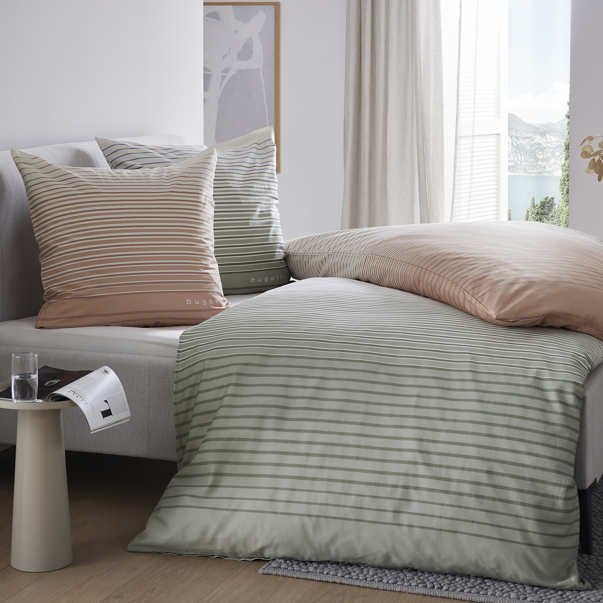 Entdecken Sie die exklusive Bugatti Satinbettwäsche, die modernes Design mit zeitloser Eleganz vereint. Das stilvolle Streifenmuster verleiht Ihrem Schlafzimmer eine frische und ansprechende Atmosphäre, während die hochwertige Satinqualität für ein unvergleichliches Schlafgefühl sorgt. Die glatte Oberfläche schmiegt sich sanft an Ihre Haut und sorgt für einen erholsamen Schlaf. Ideal für alle, die Wert auf Qualität und Ästhetik legen. Gönnen Sie sich das luxuriöse Erlebnis von Bugatti Satinbettwäsche und verwandeln Sie Ihr Schlafzimmer in eine Oase des Wohlbefindens.