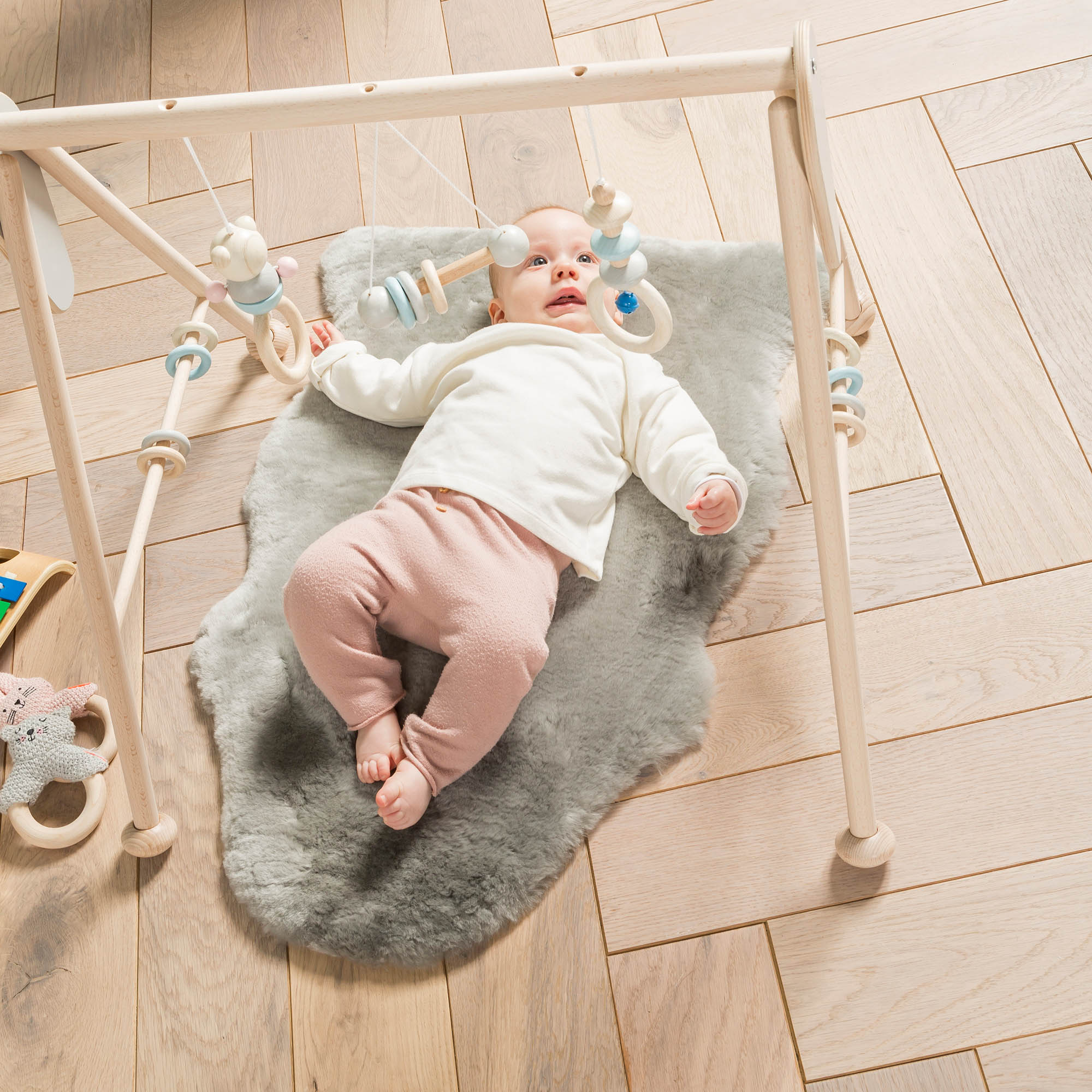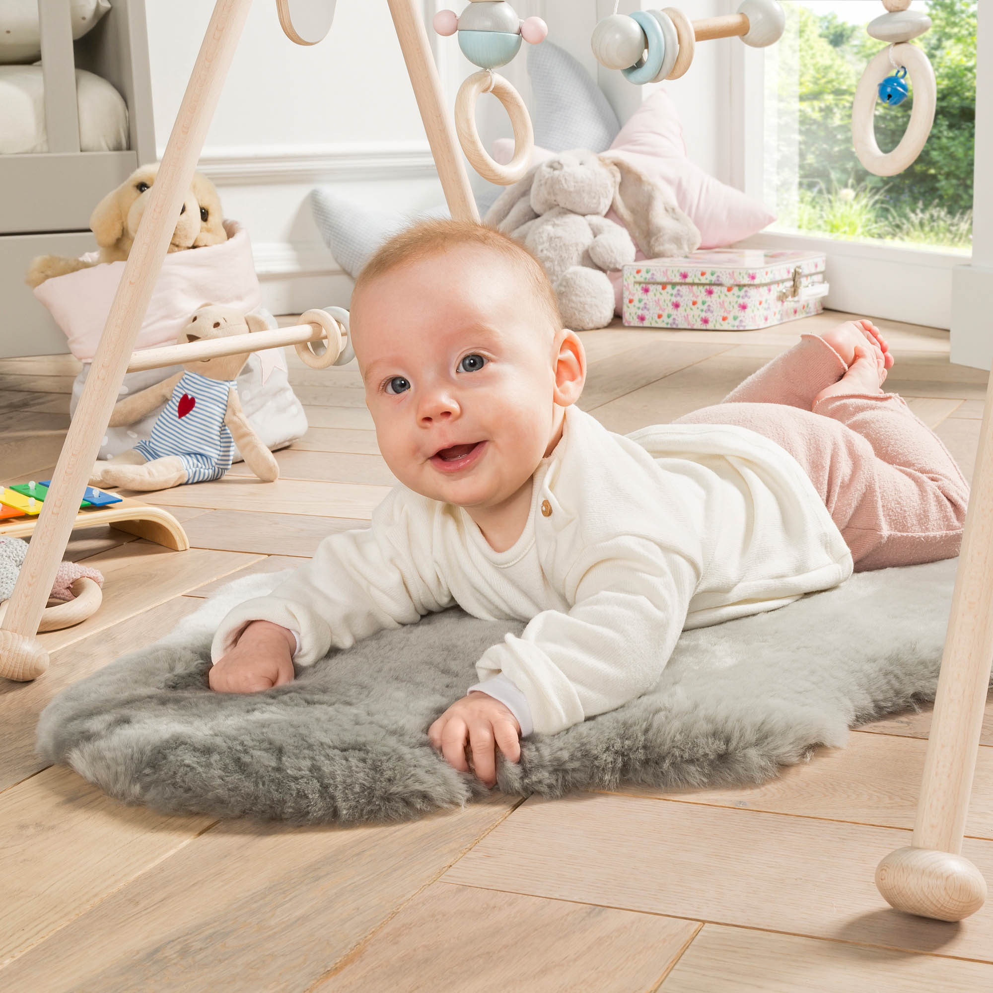 The lambfur is versatile and can be used as a cosy pad in the cot, a loyal companion in the pram or buggy, a soft underlay on the sofa or simply as decoration in the cosy corner.