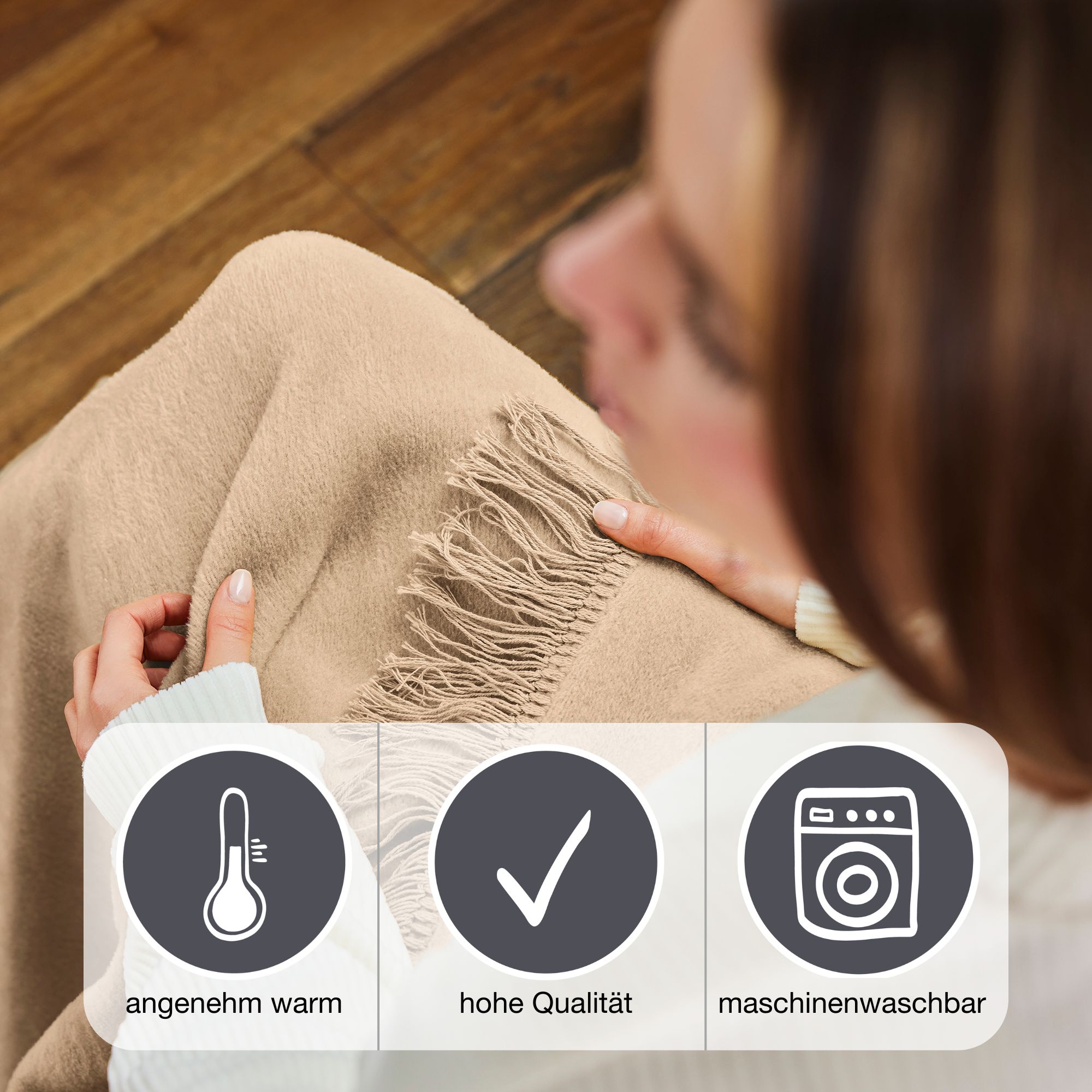 The cosy blanket is beautifully soft on the skin and warming. It is perfect for all year round, whether summer or winter, the blanket invites you to cosy up at any time.