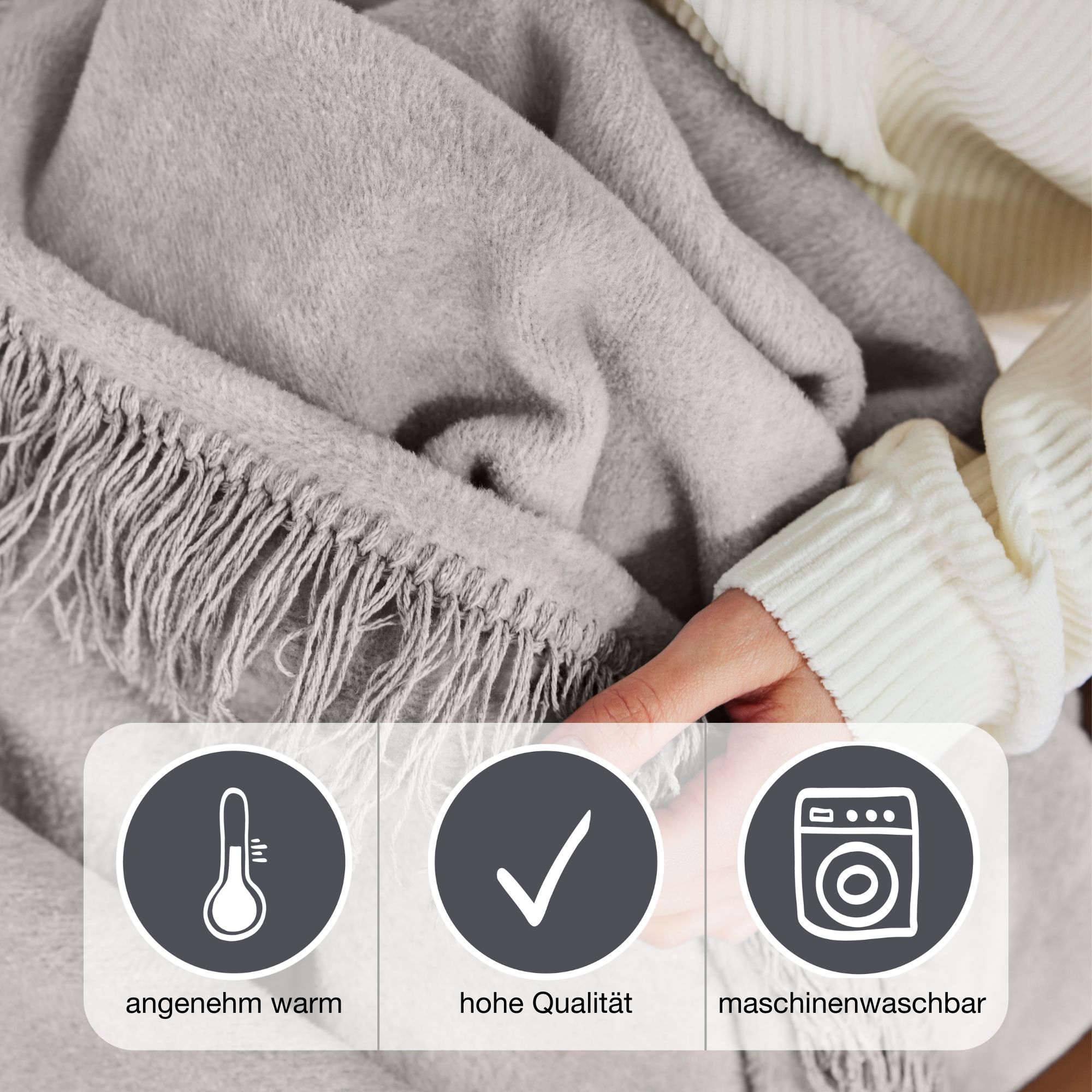 The cosy blanket is beautifully soft on the skin and warming. It is perfect for all year round, whether summer or winter, the blanket invites you to cosy up at any time.