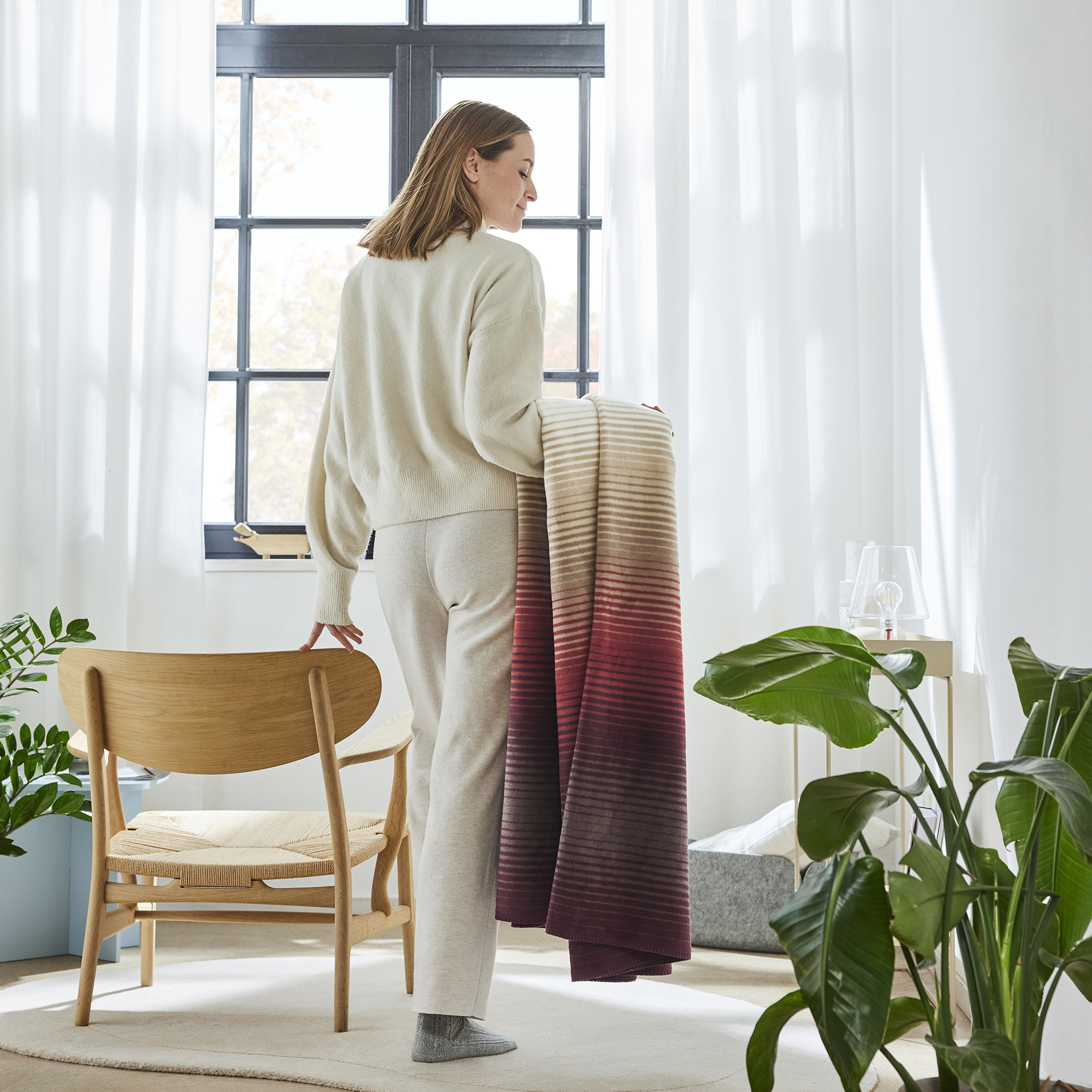 The cosy blanket is beautifully soft on the skin and warming. It is perfect for all year round, whether summer or winter, the blanket invites you to cosy up at any time.