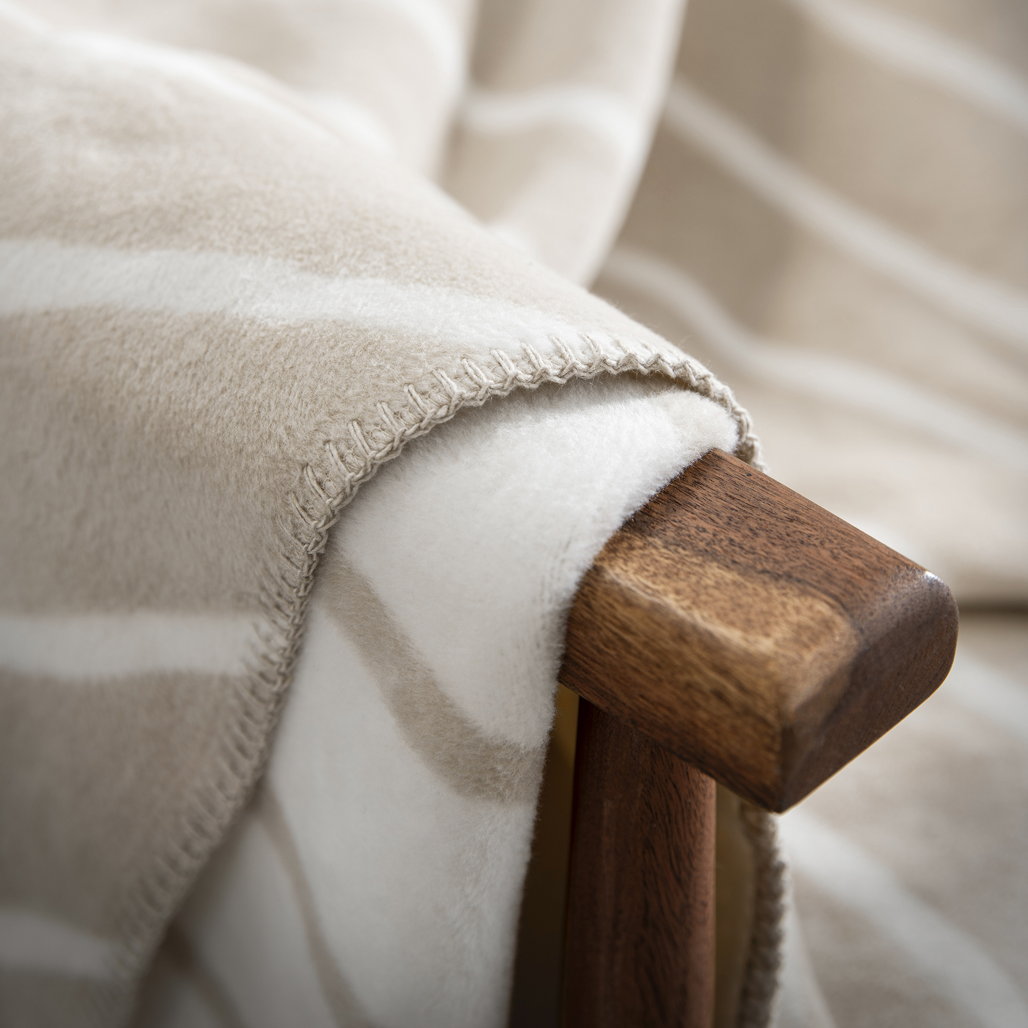 The bugatti blanket is a discreet and stylish accessory for your home. With its subtle striped pattern in the colours beige and white, it blends harmoniously into any interior. Made from a high-quality cotton blend, it is not only particularly cosy, but also durable and hard-wearing. The blanket is certified with the Oeko-Tex Standard 100, which means that it is free from harmful chemicals and therefore safe for your health. So you can snuggle up in the soft and warm fibres of this blanket without any worries. Another plus point is that the blanket is washable.