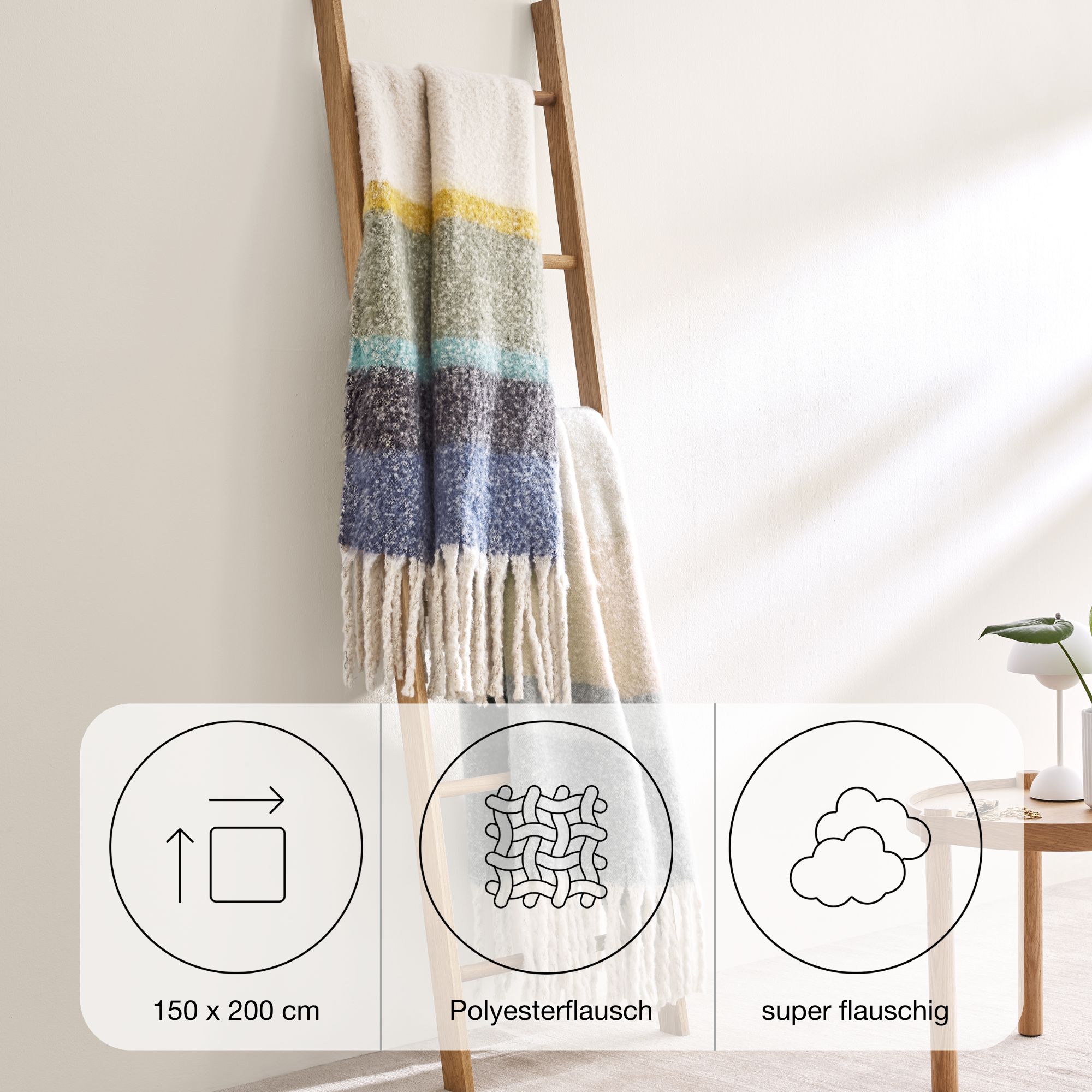 The s.Oliver blanket with fringes is an absolute must-have for every living room. With its striking striped pattern in different colours, it is not only an eye-catcher, but also a real cuddly wonder. The high-quality blanket from s.Oliver is Ökotex certified and therefore particularly environmentally friendly and kind to the skin.