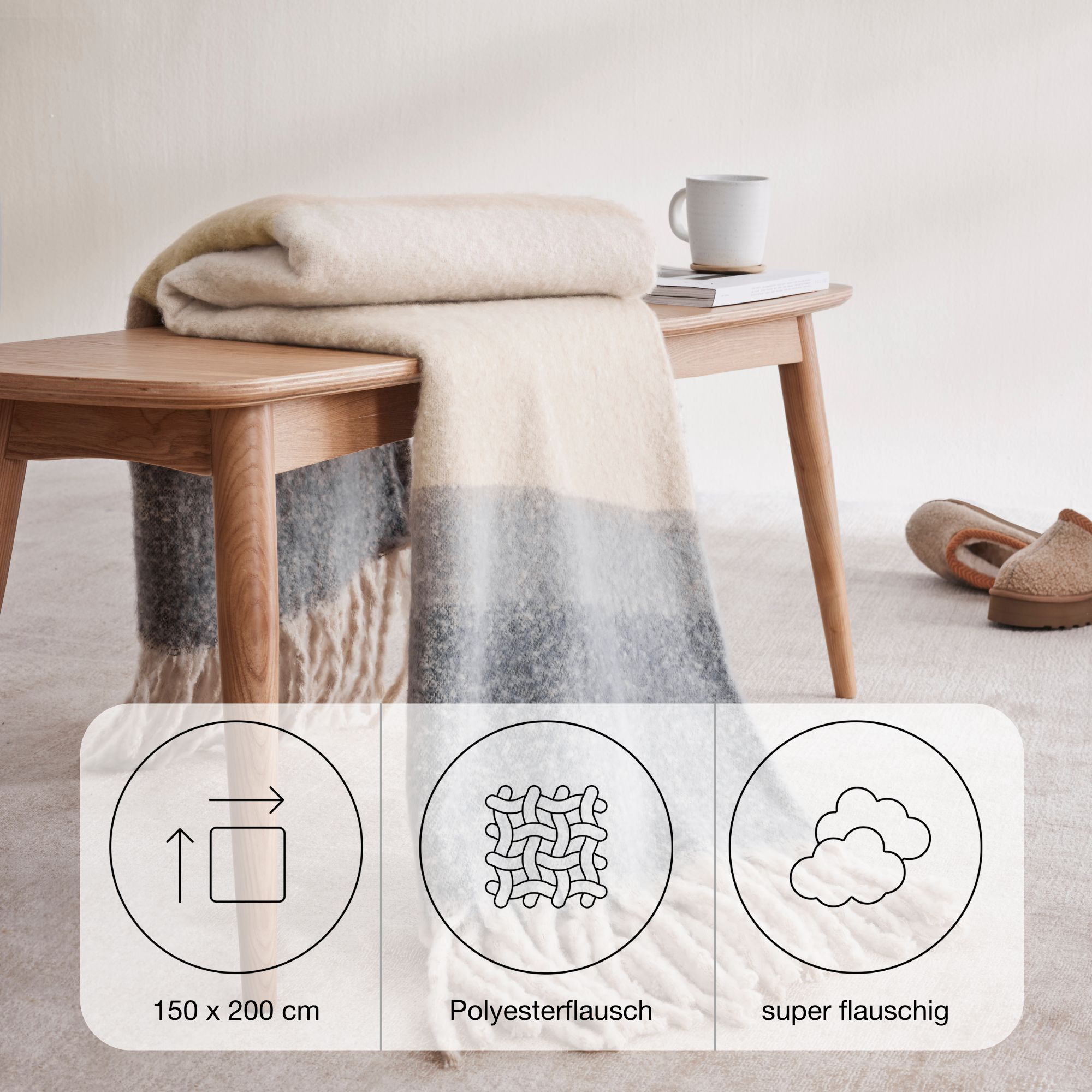 This fluffy blanket is pleasantly thick and warm. It is perfect as a cosy blanket all year round.