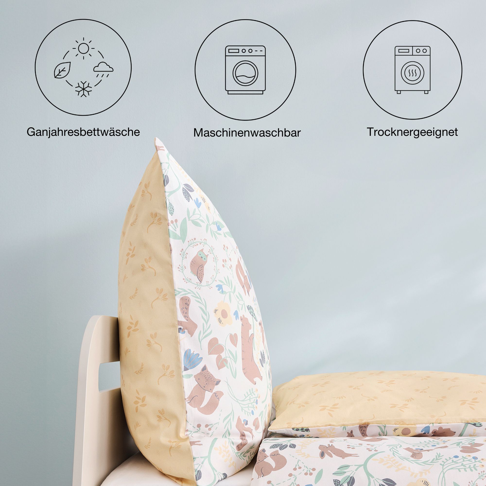 The bed linen is pleasantly soft & gentle on the skin. The bed linen is suitable for use all year round.