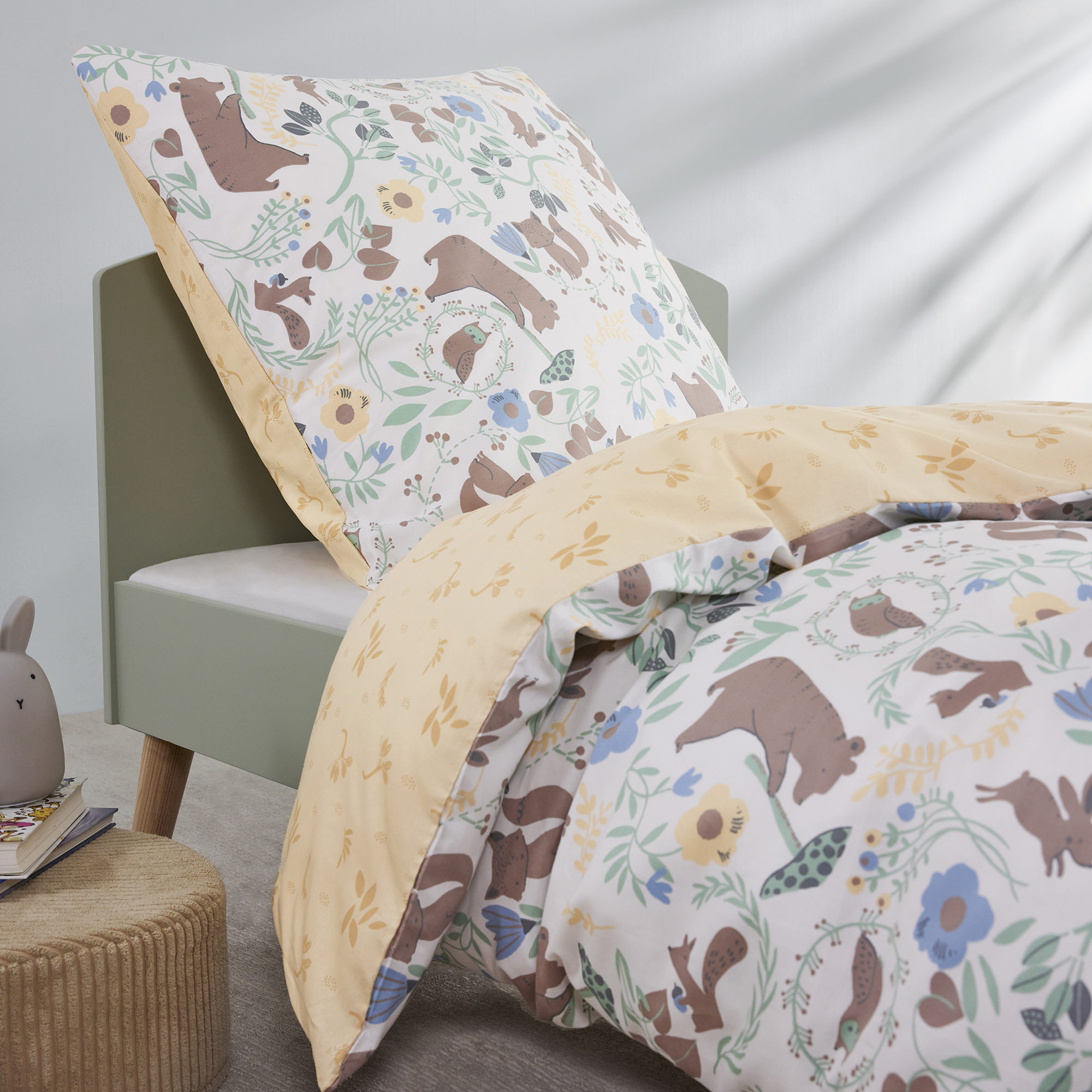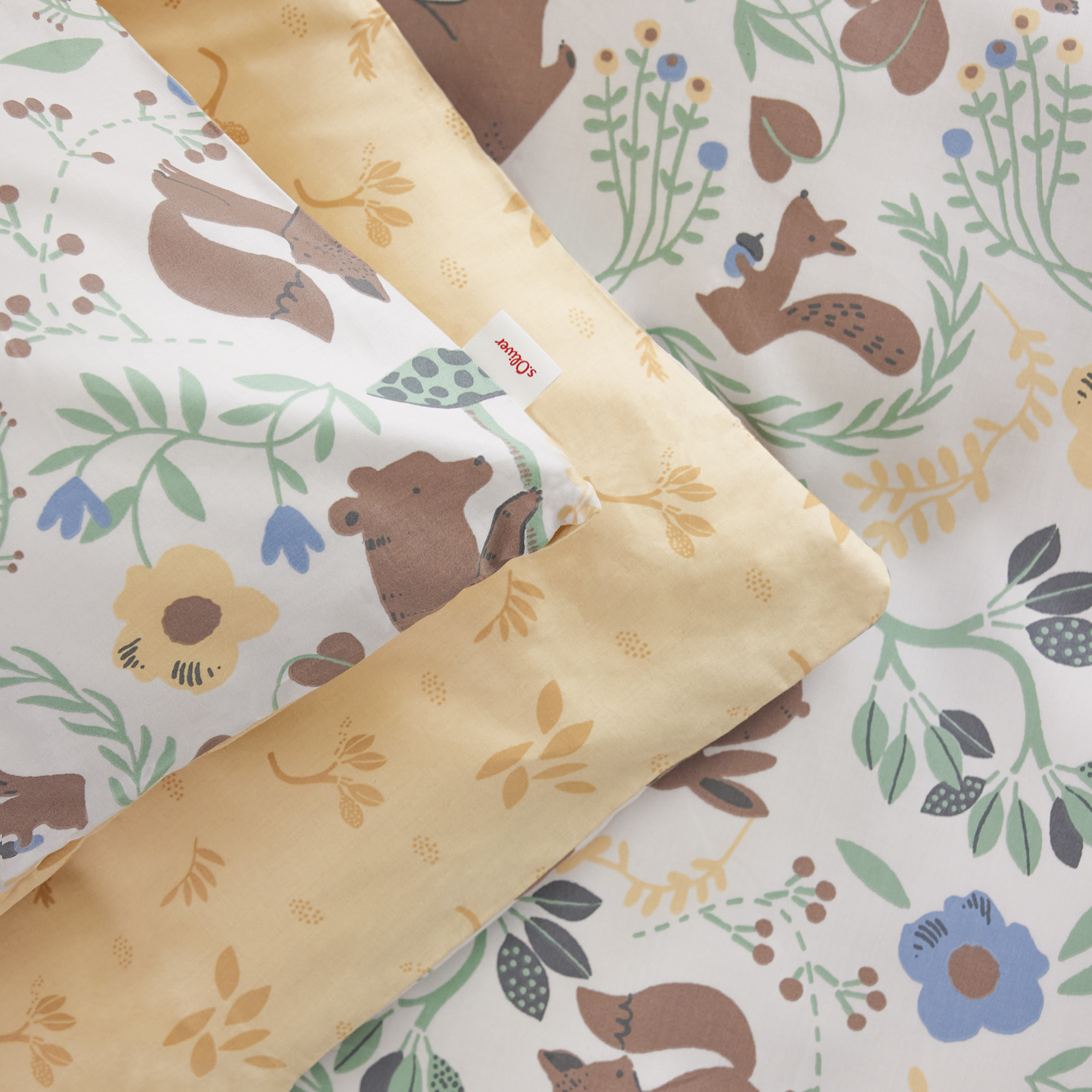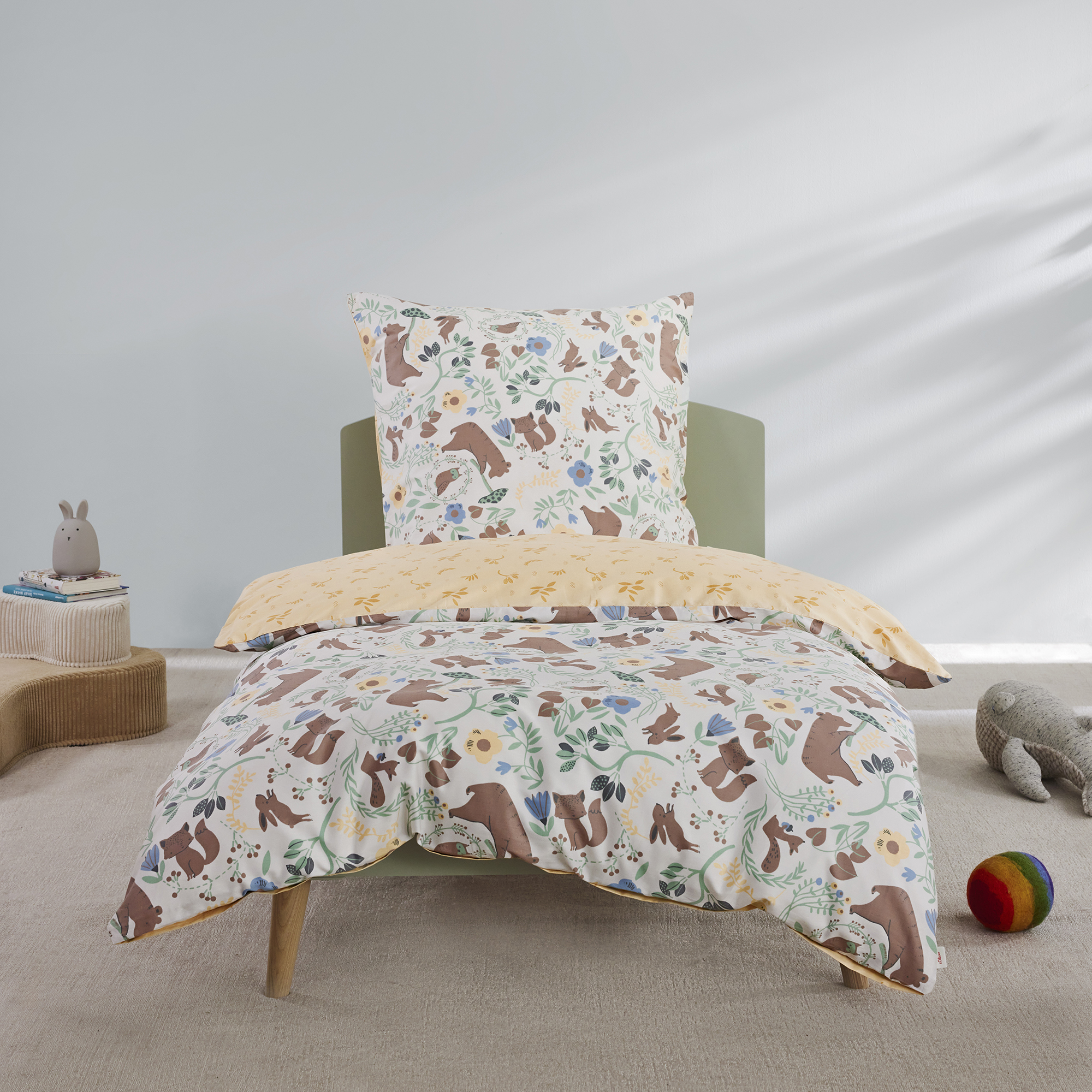The s.Oliver satin bed linen junior forest animals is perfect for little nature lovers! Create a cozy atmosphere in any nursery with the loving design featuring cute forest animals like foxes, squirrels and deer. The pattern is not only appealing, but also environmentally friendly, as the bed linen is made of 100% cotton and carries both the GOTS and OEKO-TEX certificates. The high-quality satin quality ensures a pleasant feeling on the skin and a restful sleep. The practical zipper makes it easy to make the bed and ensures that the bed linen always stays in place. The s.Oliver satin bed linen junior is not only an eye-catcher, but also easy to care for and durable. Treat your child to a cuddly and environmentally conscious bed linen with the s.Oliver satin bed linen junior. Perfect for little adventurers who like to dream of the animals of the forest.