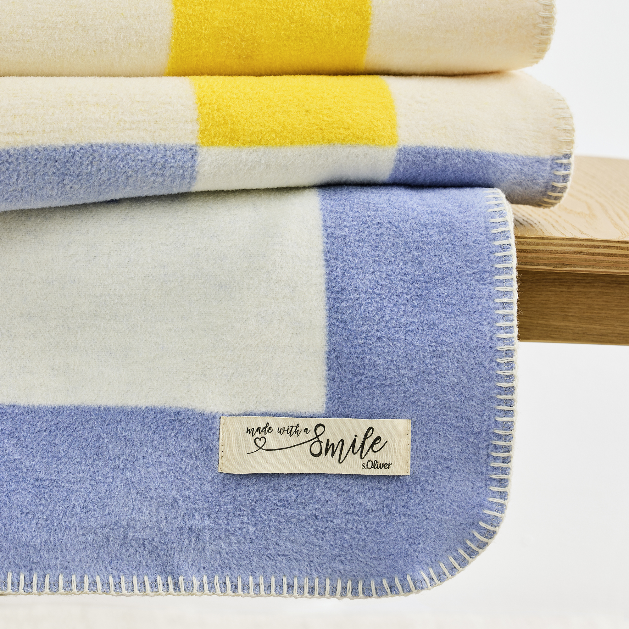Die Kuscheldecke besteht aus 58% Baumwolle, 35% Polyacryl, 7% Polyester.