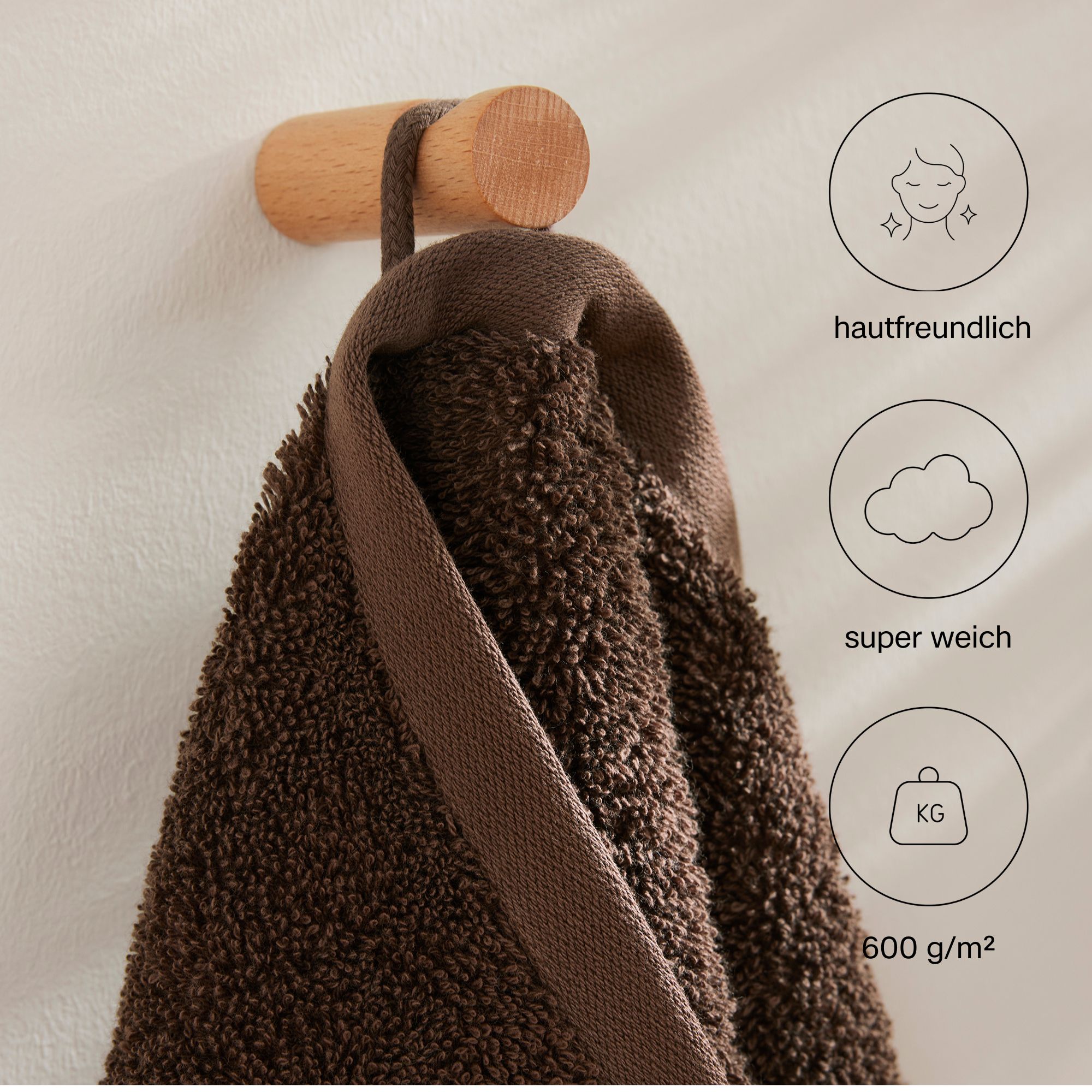 Mit 600 g/m² besonders voluminös mit flauschigem Griff und besonders sanft und angenehm weich auf der Haut.